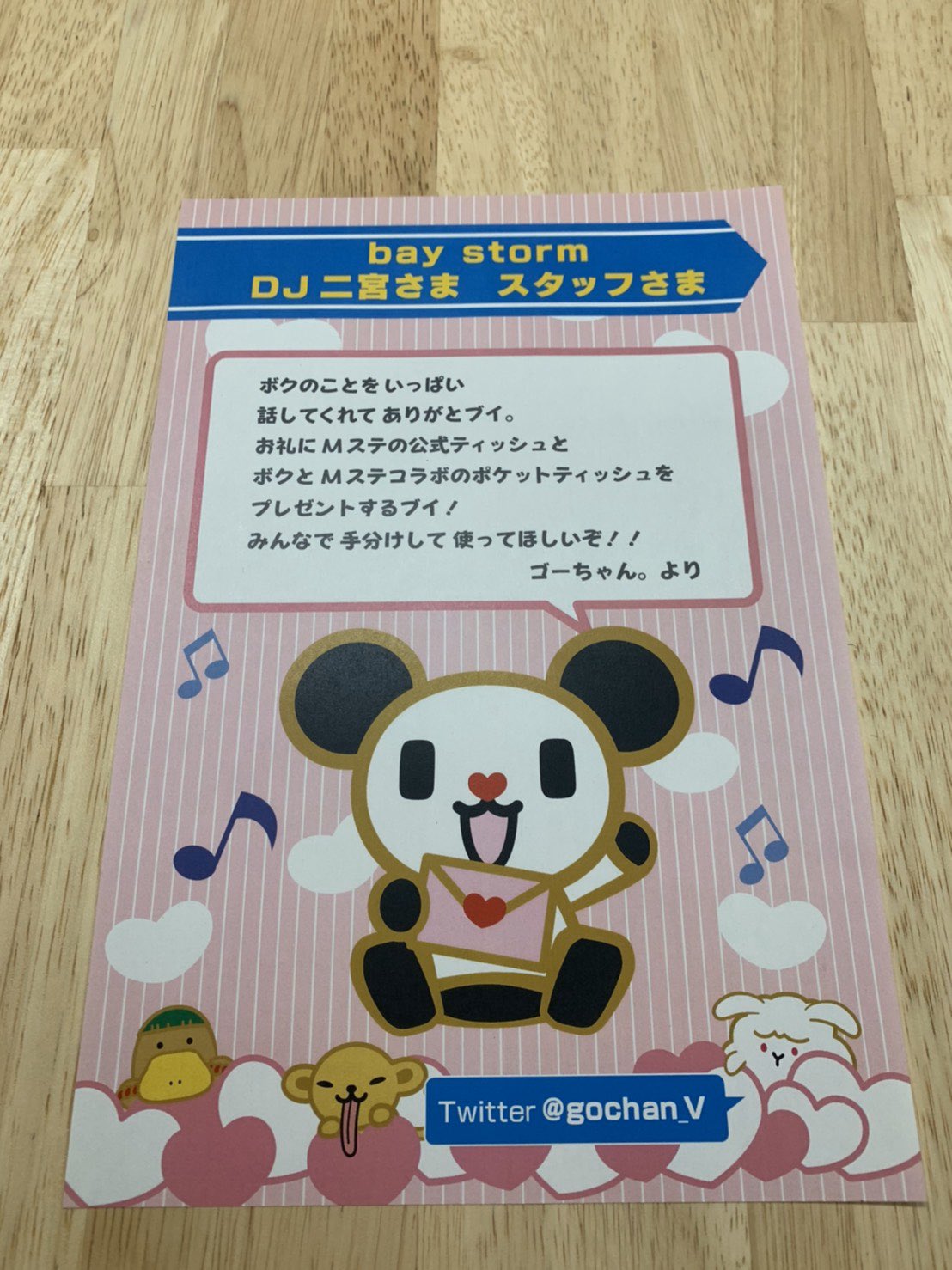 ゴーちゃん ドリフェス余韻 ベイスト 嵐の二宮くんとスタッフさんにぶじティッシュが届いたブイ テレビとラジオで局もちがうのに交流させてくれた大人のみなさん ありがとうブイ 素敵ブイ 二宮くん いや 今日だけはニノと呼ばせてもらうブイ
